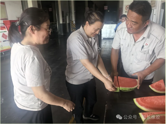 点击量:263近日,陕西地区持续高温,户外温度直逼 40℃。在这样的闷热天气中,延长橡胶公司的生产一线依旧呈现出一片繁忙的景象。原材料库的工作人员们始终坚守在库区的各个岗位上,全力保障全钢、半钢轮胎的生产供应,采供部更是针对性地开展了一系列 “送清凉” 活动,为一线人员注入夏日里的清凉动力。